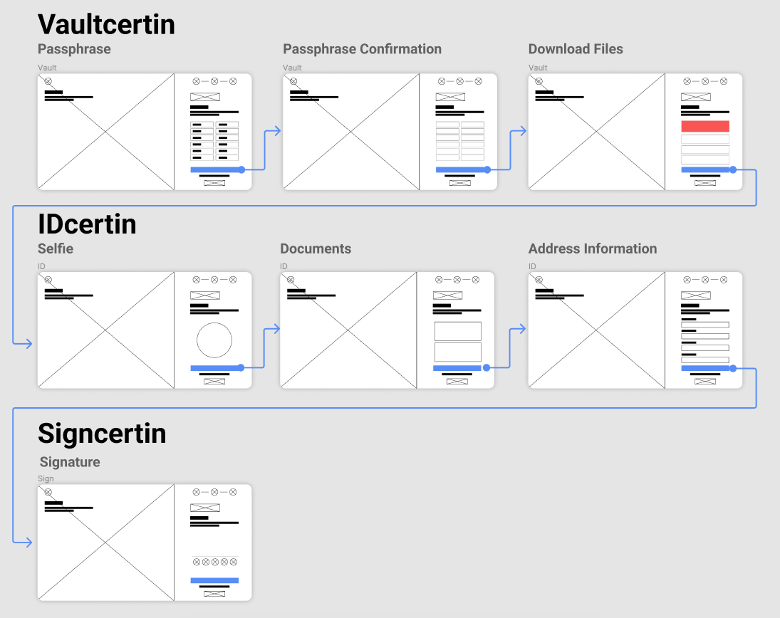 After that I layed out what the User Journey would be. Please take in mind that in this phase we like to consider only the happy path, so it is usually a straight line towards the Goal of that journey.