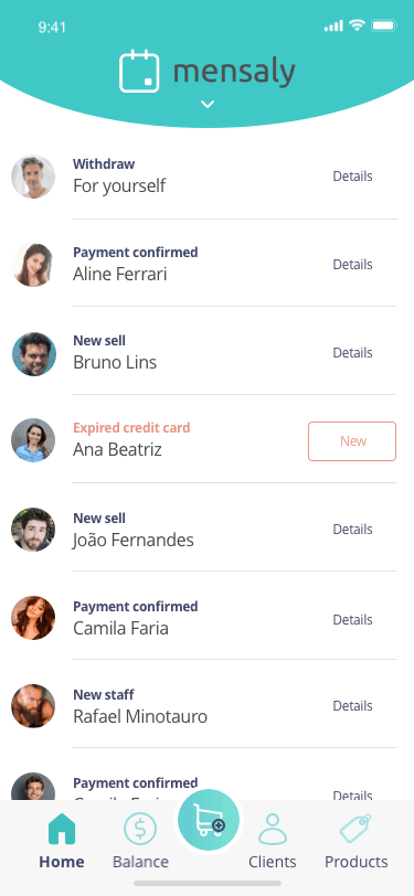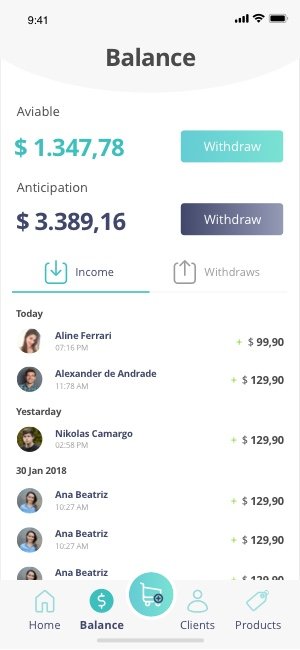 We couldn't have the home to be like other bank apps, showing the balance because our user might get to open the app in front of their clients, so this information needed to keep private. So we thought what to do, and it basically is where they can check their recipts.